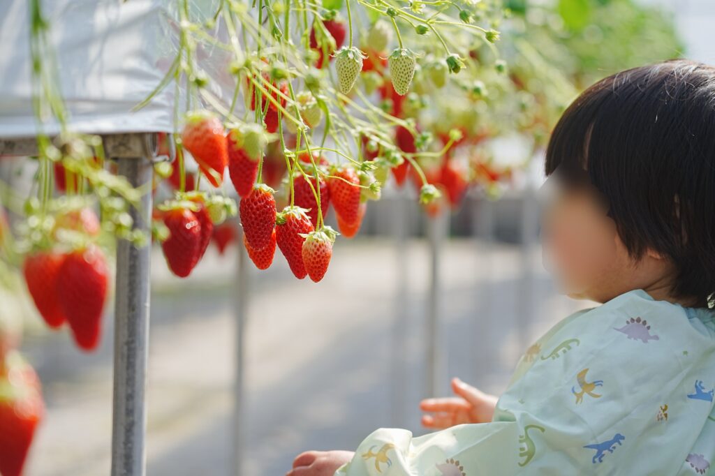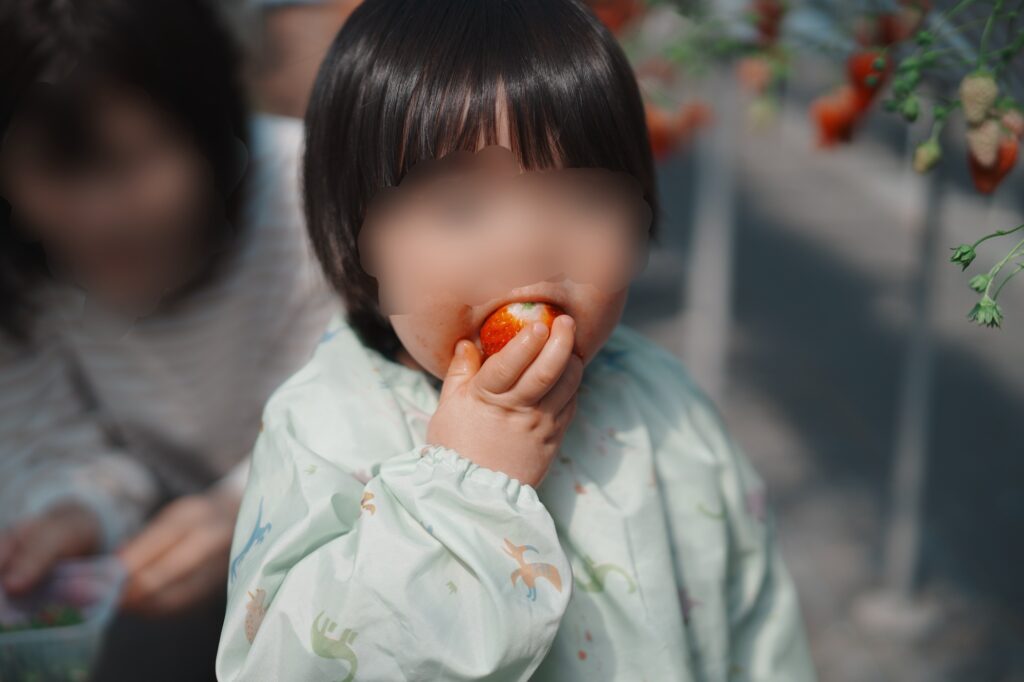 子どもの顔といちごの高さ(位置)が近いので相性抜群です。