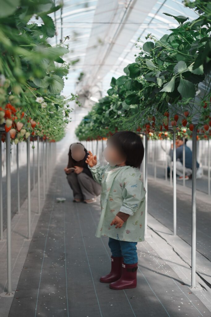 子どもの目線の高さよりちょっと上にいちごが来るので